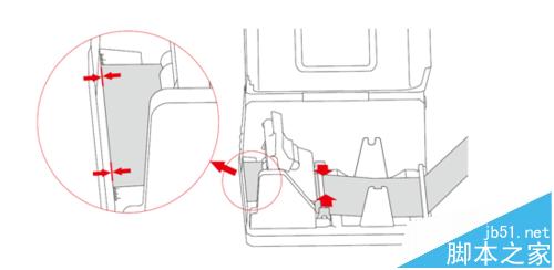 3、将首张面单的前边缘与撕纸标尺的边缘对齐,纸张导向片靠紧面单,但不能过于挤压使面单变形。