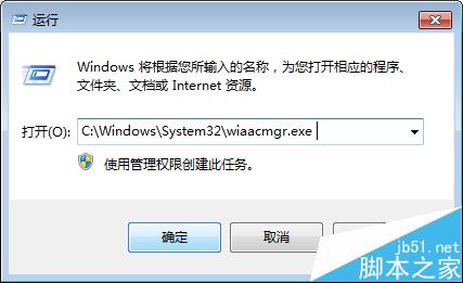 3、然后打开电脑开始按键,点击运行,输入这段文字C:/Windows/System32/wiaacmgr.exe 点击确定,就可以了扫描了