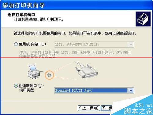 4、然后选择 “创建新端口”,端口类型选择 “standard TCP/IP port”