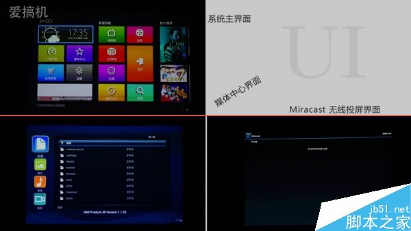 坚果G1的系统主界面中规中矩,看得出经过专门的优化,但进入二级或三级页面,有的地方保留了 Android 原生系统的风格(Miracast设置),有的地方就显得low一些(媒体中心)。
