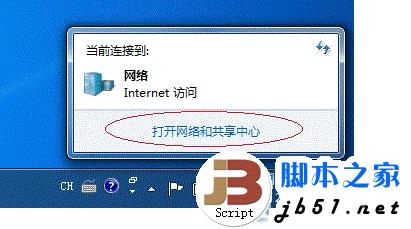 1.1 在系统托盘的【网络】图标上单击,选择【打开网络和共享中心】,如下图: