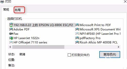 5、点击“确定”,再点击“确定”后返回到打印页面,点击“布局”;