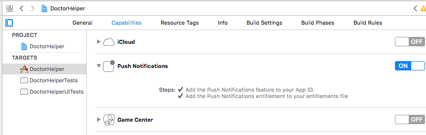 解决方案:需要在Xcode 中修改应用的 Capabilities 开启Remote notifications,请参考下图: