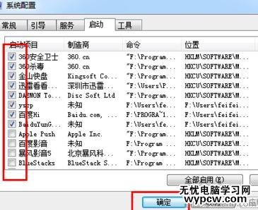 切换至“启动”选项卡,然后禁用部分随系统启动程序或全部,最后点击“确定”按钮重启电脑。