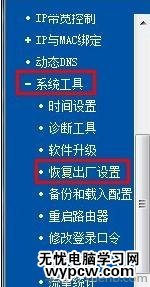 在左侧蓝色区域展开“系统工具——恢复出厂设置”