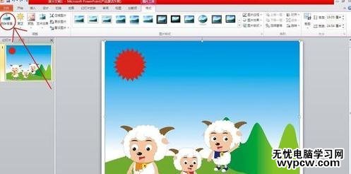 第四,当图片插入ppt中时,点击“删除背景”按钮,准备抠图。