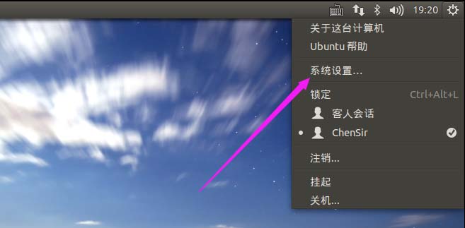 1、启动Ubuntu之后,我们点击屏幕右上角的设置按钮,如图示。