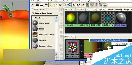 17、选择苹果模型,在材质Blinn中右键选择Assign Metarial To Selection命令,将材质给所选物体。如图17所示。