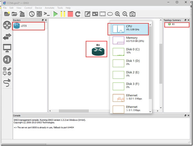 下面介绍如何把物理机桥接到GNS3的模拟设备上: