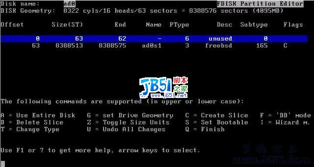 我们采用光盘启动安装FreeBSD的方式,并且硬盘上只有FreeBSD一个系统。