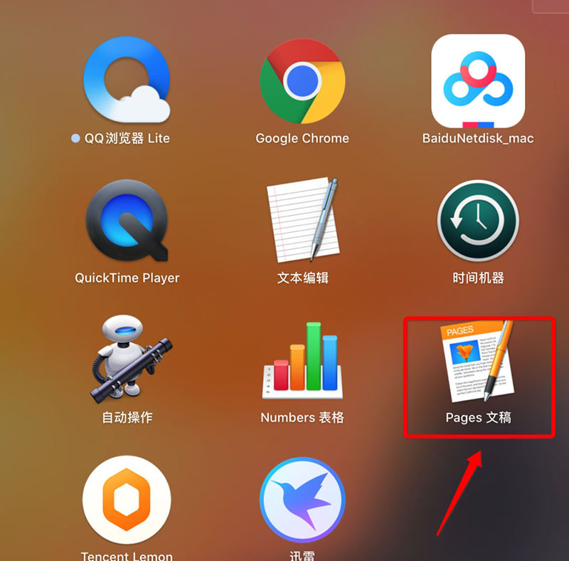 1、首先打开电脑"启动台"中的"Pages文稿"如图