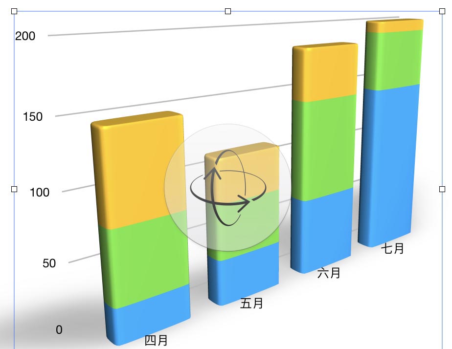 7、拖动图表中的坐标按钮,可以切换图表的不同视角,因为这是三维图表。