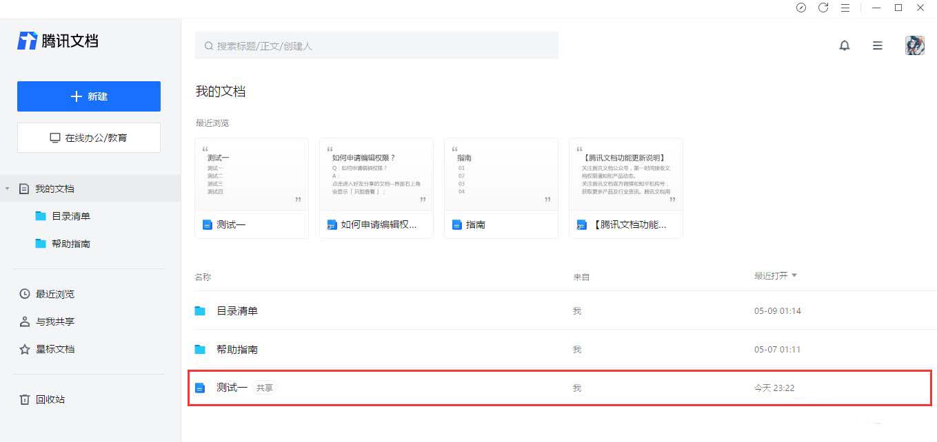 1、打开腾讯文档,在腾讯文档-我的文档界面中点击选择任意文档。