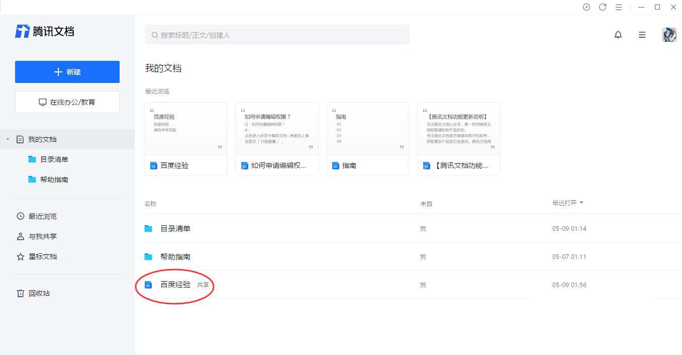 1、打开腾讯文档,在我的文档界面找到需要设置目录的文件,点击打开该文档。