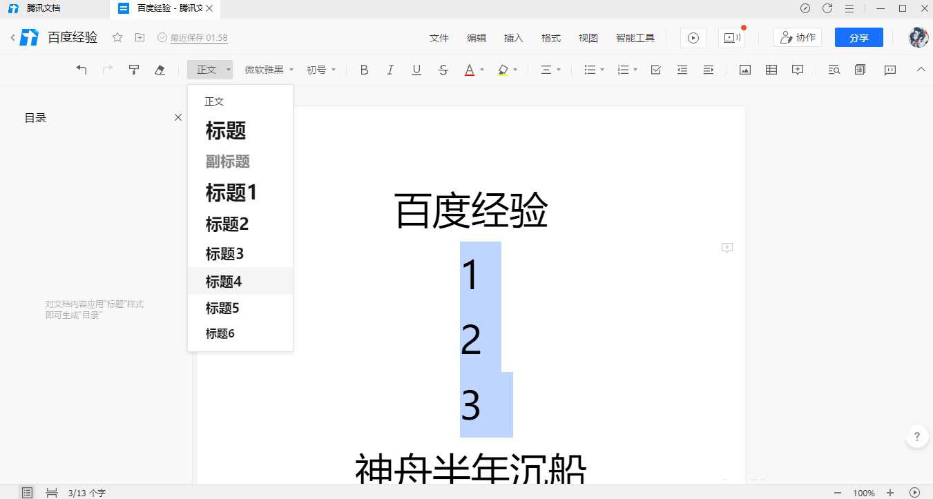 以上就是腾讯文档给文件添加目录的技巧,希望大家喜欢,请继续关注武林网。