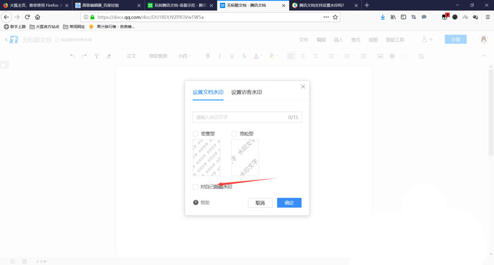 5、还可以设置自己看不到水印,以提高自己的阅读体验。这就是腾讯文档如何设置水印的全部步骤,怎么样?是不是很简单?