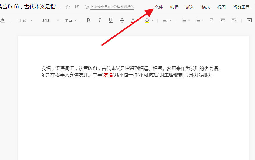 2、进入文档后,点击上方的“文件”。