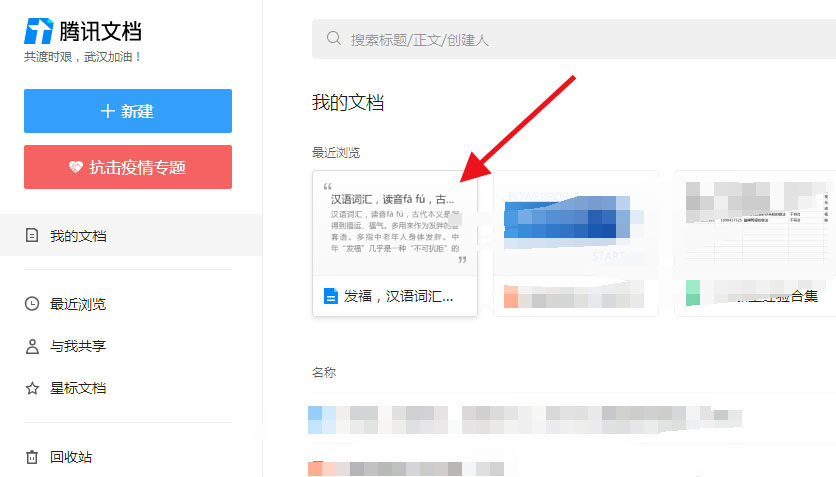 1、打开腾讯文档首页,找到发布为网页的文档。