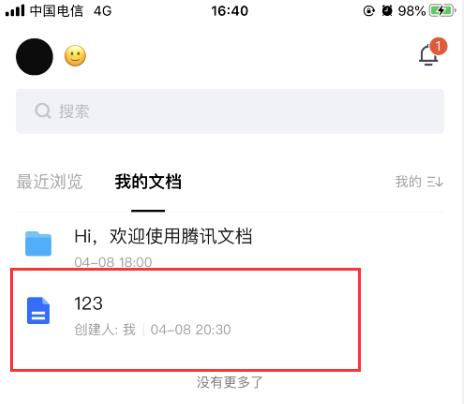 点击软件图标进入腾讯文档找到自己要置顶的文档向左边滑动后选择更多选择第一个“置顶”即可