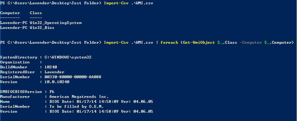如果要对大量的数据进行处理简单的任务,可以把数据保存在一个CSV文件里面,使用Import-Csv来导入数据,导入后为每一行自动创建对象,并将列的名字作为对象的属性,之后用foreach对数据的每一项进行操作。