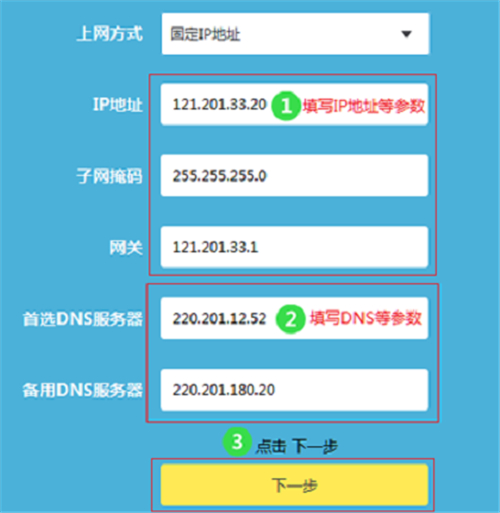 宽带运营商会提供一个IP地址、子网掩码、网关、2个DNS给用户;在未使用路由器的时候,需要在电脑本地连接中填写宽带运营商提供的IP、子网掩码、网关、DNS,如下图所示,然后电脑就可以上网了。如果你的情况和上面描述的一致,这里请选择“固定IP地址”,然后填写IP地址、子网掩码、网关、DNS,如下图所示。