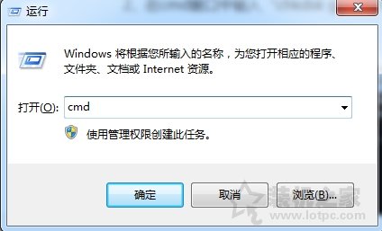 1、首先我们点击“开始菜单”弹出菜单之后选择“运行...”,在运行框中输入“cmd”并确定打开命名提示符,如下图所示:
