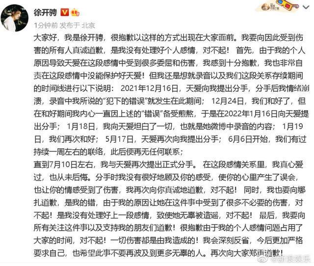 徐开骋:向张天爱和古力娜扎道歉 十
