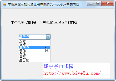 在编写C#的Windows应用程序时,可能我们不希望用户修改或编辑ComboBox控件中的内容,而是让用户在里面选择,本文就给出具体的解决方法。