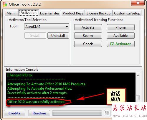在激活office时,如果出现Cannot use EZ-Activator because your licensing details are corrupt错误。打开Office Toolkit工具