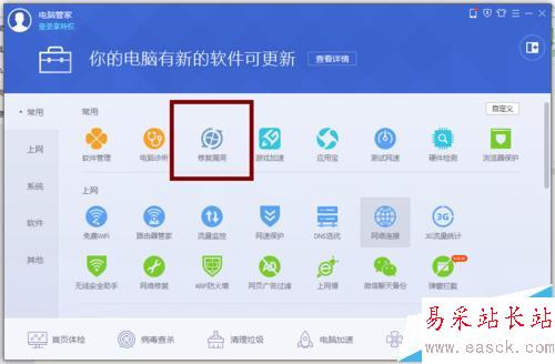 1、还有一个办法就是修复电脑里面的漏洞,同样可以防止病毒,打开电脑管家工具箱