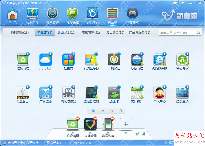 用户在安装了新毒霸之后,在软件界面都找不到开机启动项设置的地方,软件主界面只有电脑杀毒、铠甲防御、网购保镖、手机助手、百宝箱、我的游戏等几大功能区域。使用新毒霸如何管理我系统开机启动项呢?