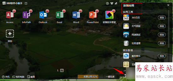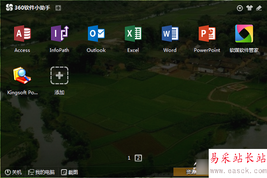 360软件助手,是个很方便的小助手,特别是在win8里更显得重要,在这里你不但可以添加程序还可以添加文件夹或是磁盘。