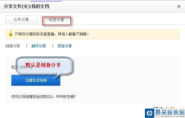 接着上一步,我们点击分享后,可以看到有公开分享和私密分享两种功能,我们当然选的是私密分享,私密分享默认的是创建私密连接。