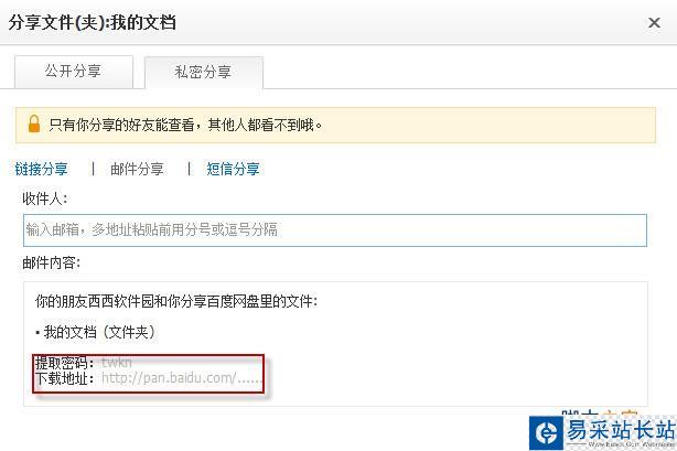 方法也很简单,输入右键收件人即可,私密文件密码和连接都会在邮件中发送给好友!