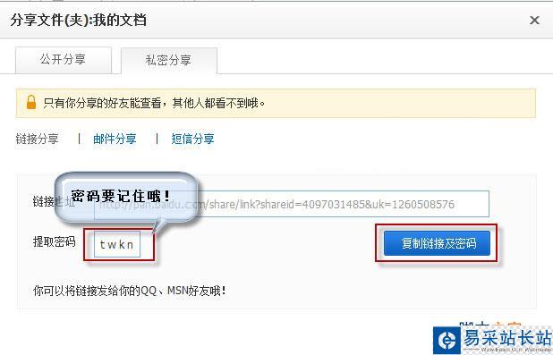点击"创建私密连接"就ok啦!但是亲们要把密码牢牢记住,然后你就可以复制分享链接给好友了!