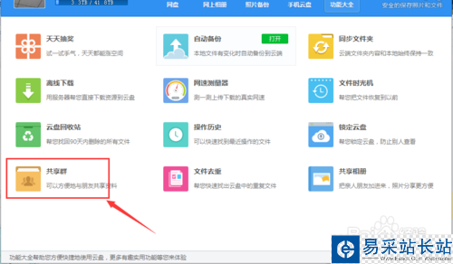 3、打开之后,我们可以在里面看到很多的功能,我们点击【共享群】,如图示。