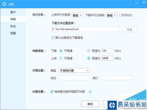 4、进入设置后,在左侧的TAB页中选择<传输>选择,然后在右侧的菜单中传输速度,为上传限速。