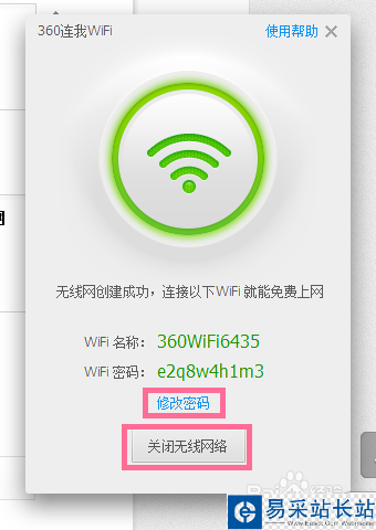 如果你觉得360连我wife提供的密码太过复杂可以点击《修改密码》修改成自己熟悉的密码。不想使用的时候点击《关闭无线网络》即可。