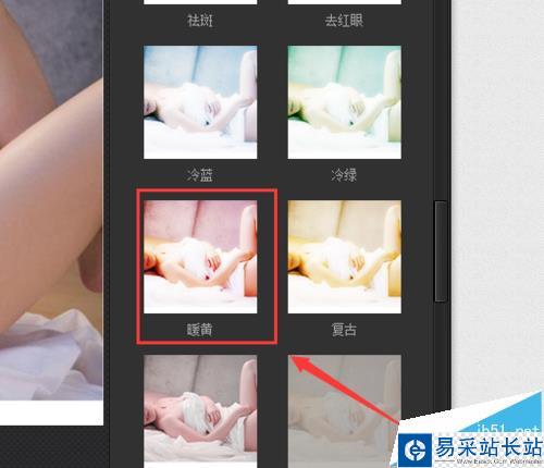 7、点击暖黄效果选项,我们的照片就自动应用该效果,最后效果如图所示: