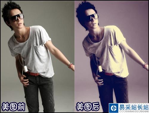 今天就让我来教大家用“美图秀秀”软件自制炫丽手机壁纸吧。下面就以笔者自己做的一个iPhone手机壁纸为例,向大家传授下从裁剪到美化的制作过程!首先展示一下笔者用偶像韩庚制作的效果对比图吧:
