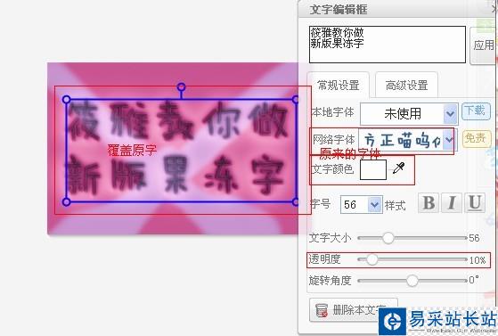 6、右击插入,先插入那张你要看清楚0 0,调整透明度【这个没有指定的,只要看得见后面的字就行】,放大合并