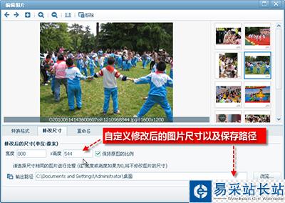 随后,只需要在修改尺寸的批量处理界面下,根据你要上传的网络空间的一些要求,将原来大尺寸的数码照片自行输入数字改小一点,再定义好修改后要保存的路径,单击“确定”按钮,美图看看就可以帮我们自动完成批量修改了,如图02所示。