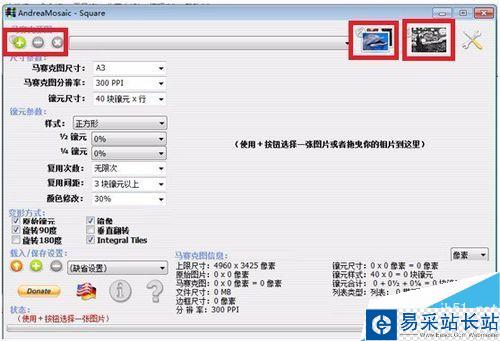 参数设置好之后,点击红框标识的第二个步骤,选择用来拼接的图片。这里最好先准备大量的图片并放在一个文件夹里面,图片的色彩也最好丰富一些。