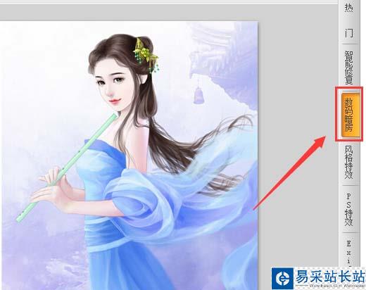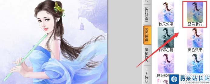 6、点击数码暗房选项,在其内找到蓝黄渐变选项,如图所示: