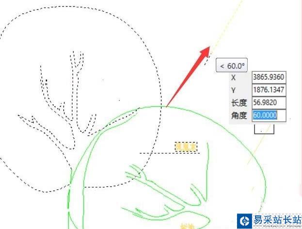 6、接下来点击界面以选择旋转圆点,即可实现对所选定图形的任意旋转操作。如图所示,也可以在命令行输入坐标实现精确旋转操作。