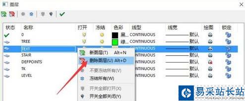 5、如果想对DXF图层进行修改操作,只需要右击对应的图层列,即可从其右键菜单中选择“删除”项对其进行删除。