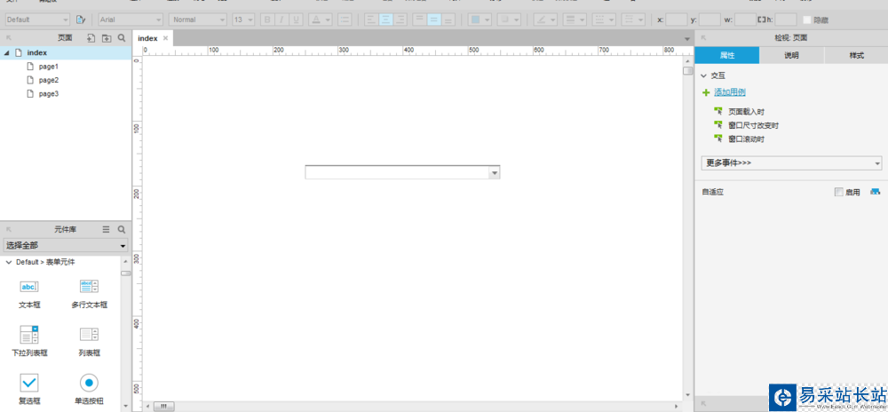 Axure RP 8设计软件原型工具中的下拉框,可以展示多个值,在切换选项时,改变文本框和标题。下面利用一个实例说明这个背景,操作如下: