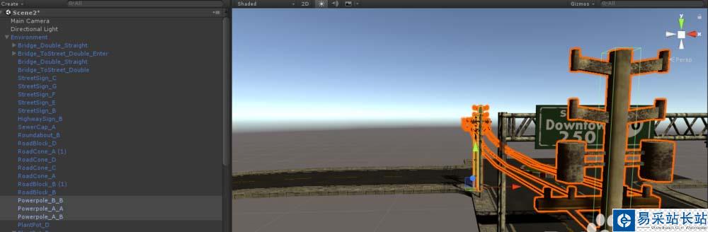 2、新建Environment空对象,把需要的预制体拖动到该对象下。我们先把两个桥梁部件拖动进来。