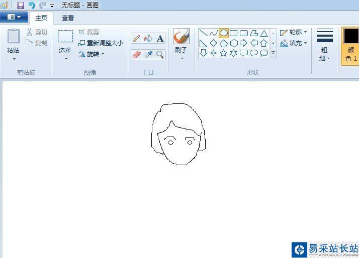 5、在形状选择框中选择椭圆形,并画出眼睛。