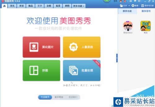 1、打开电脑,打开美图秀秀,进入美图秀秀的首页,如下图所示